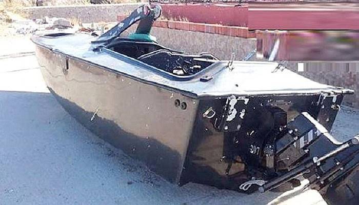 Sürat teknesini andıran deniz aracının arkasında yatık şekilde bir motoru bulunuyor ve uzaktan kumanda edilerek hareket ettiriliyor.