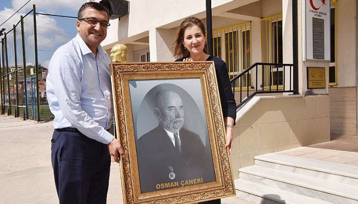 Çan Belediye Başkanı Bülent Öz ise yaptığı açıklamada; “Çan ilçemizde büyüyüp yetişen, Çanımızda direnişin sembolü Müdafaa-i Hukuk Cemiyetini kuran, 15 Mayıs 1921'de baskın yapan Yunan birliğini imha eden ve Kurtuluş Savaşı'na katkılarından dolayı "İstiklâl Madalyası" ile ödüllendirilen ÇANERİ (Çanın Askeri) unvanlı Osman ÇANERİ büyüğümüzün ismini taşıyan ilköğretim okuluna giderek çerçeveli fotoğrafını okul müdiremize takdim ettik.” Diye konuştu.
