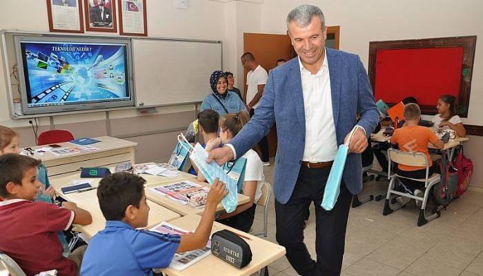 Karabiga Belediye Başkanı Ahmet Elbi, yeni eğitim öğretim yılının başlamasıyla okulları ziyaret ederek, okula yeni başlayan minik öğrencilerin heyecanına ortak oldu ve kırtasiye seti hediye etti.