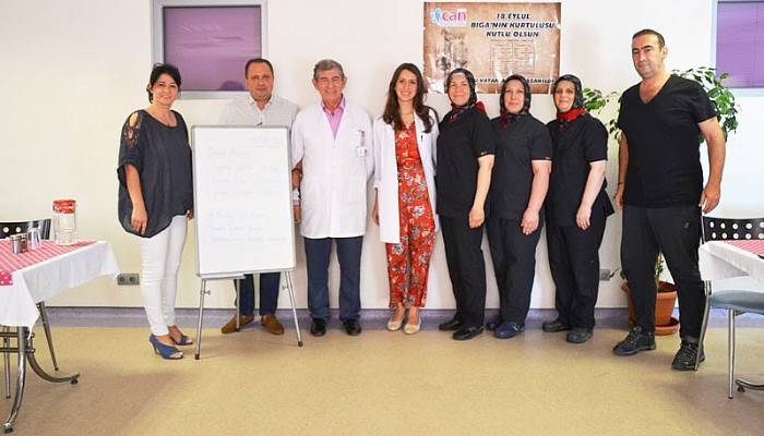 Daha sonra Özel Biga Can Hastanesi Başhekimi Dahiliye Doktoru Cengiz Ünüvar, Medikal Direktör Feza Şen, Başhemşire Bahar Karadal, Diyetisyen Burcu Peçen hatıra fotoğrafı çektirdi.