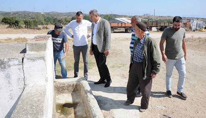 Karabiga Belediye Başkanı Ahmet Elbi, Camikebir Mahallesinde su hattında problem olan maslak çeşmesini yerinde inceleyerek ilgililerden bilgi aldı.